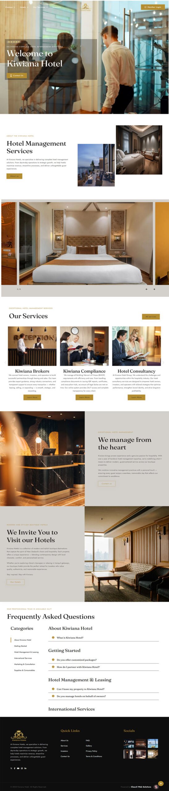 The new Kiwiana Hotel website launches their brand with a powerful digital presence—combining the functionality of a boutique hotel OTA with a service management platform designed for growth. With an intuitive browsing experience, visually rich hotel showcases, and a scalable backend for partner management, the site positions Kiwiana Hotel to expand internationally and connect travelers with unique, high-quality boutique stays.